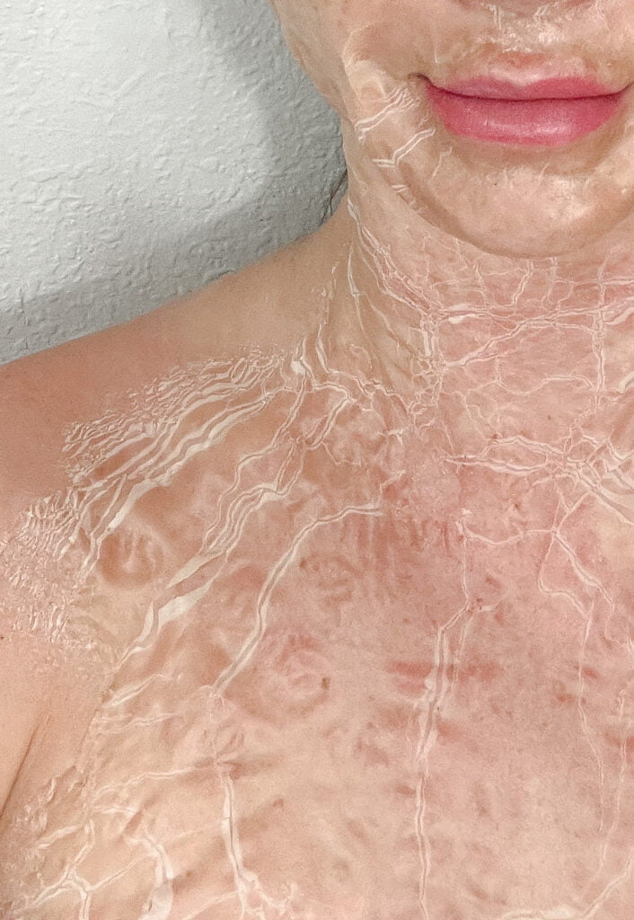The mask sits on the skin for 45 minutes it Hydrolyzes dead, redundant cell build up. The action of reverse osmosis clears cell debris – including toxins, oxidized waste, Lipofuscin, and free radicals. Increases collagen production and Enhances optimal skin function. Great for all skin types and skin conditions.